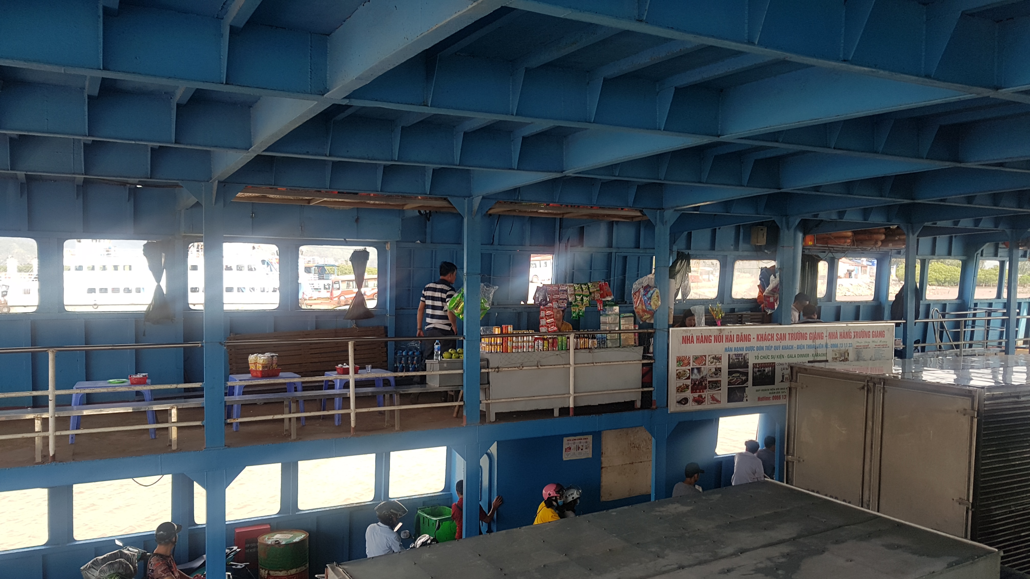 배 안에는 노점 상인들이 우리를 기다리고 있었습니다. 쌀국수 한그릇 바로 때릴 수도 있는 정도 및 기타 과자, 맥주 등 을 판매하고 있었어요. 참았습니다. 배가 고팠지만.. 깟바에서 제대로 한끼 먹기 위해서 참고 또 참았어요 ㅠㅠㅠ