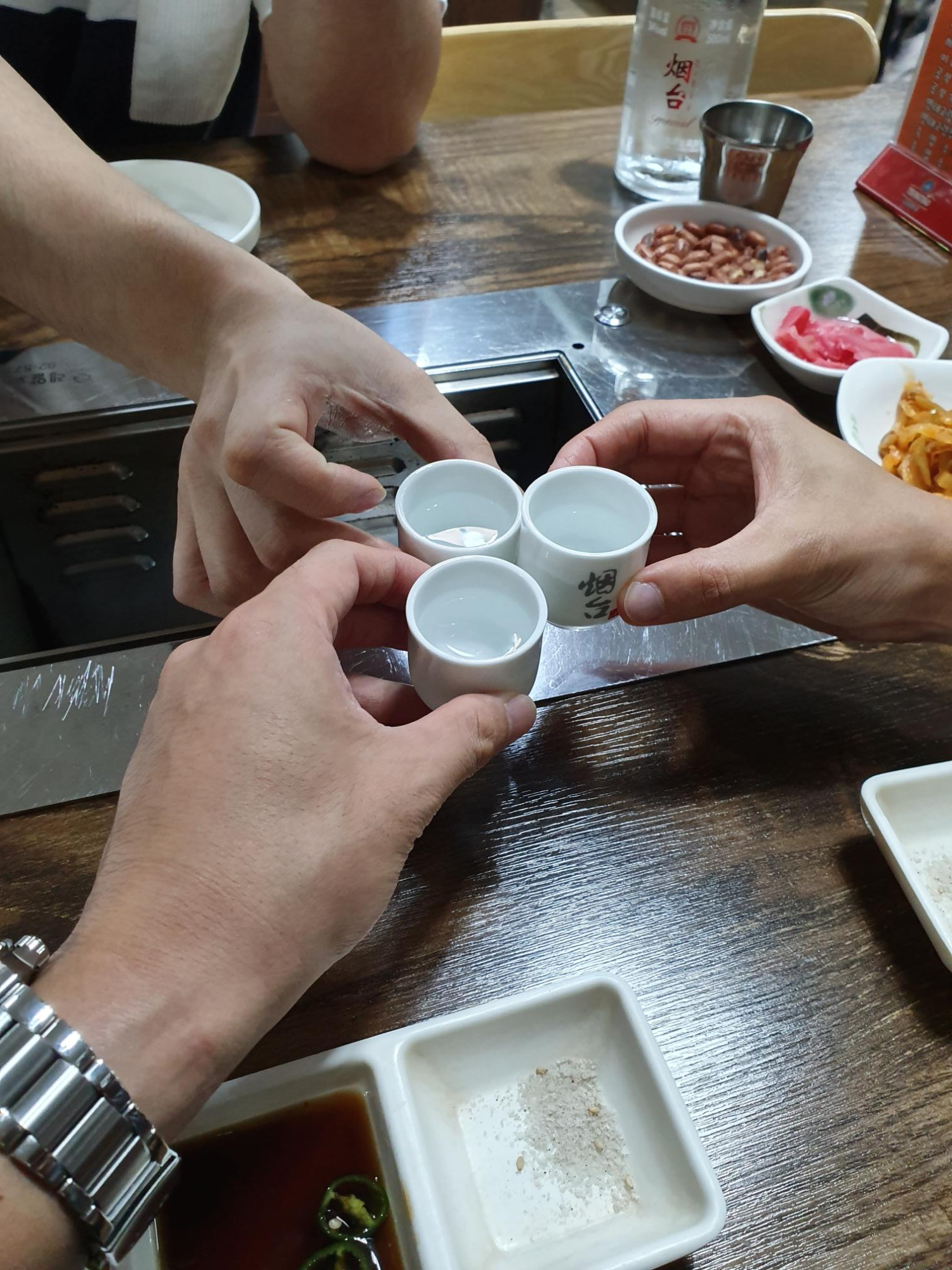 드디어 친구들과 만났답니다. 정기적으로 보는 삼총사 맴버들인데... 이번은 조금 특별한 시간이었어요. 그래서 연태고량주와 함께 축하의 시간을 시작해봅니다.