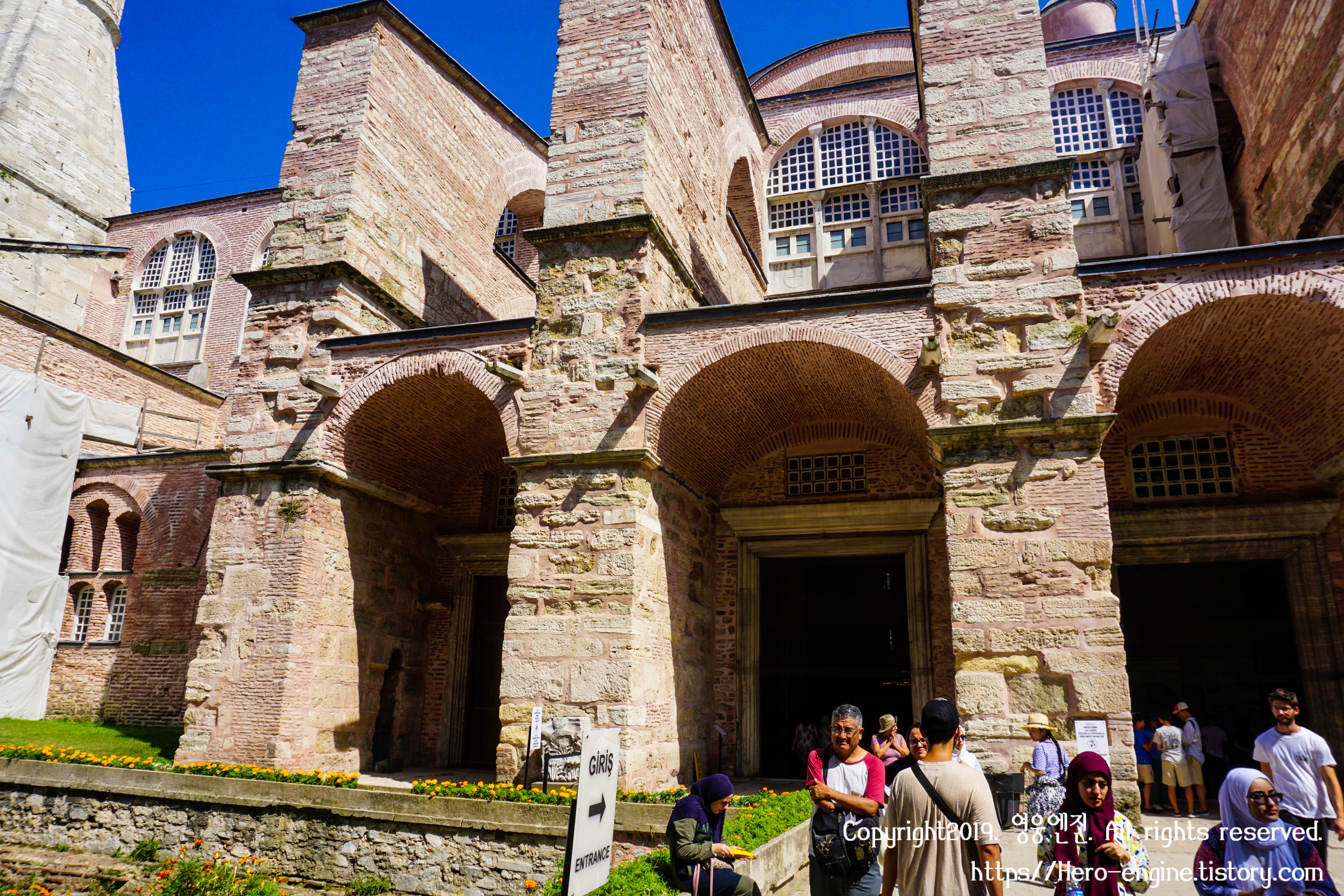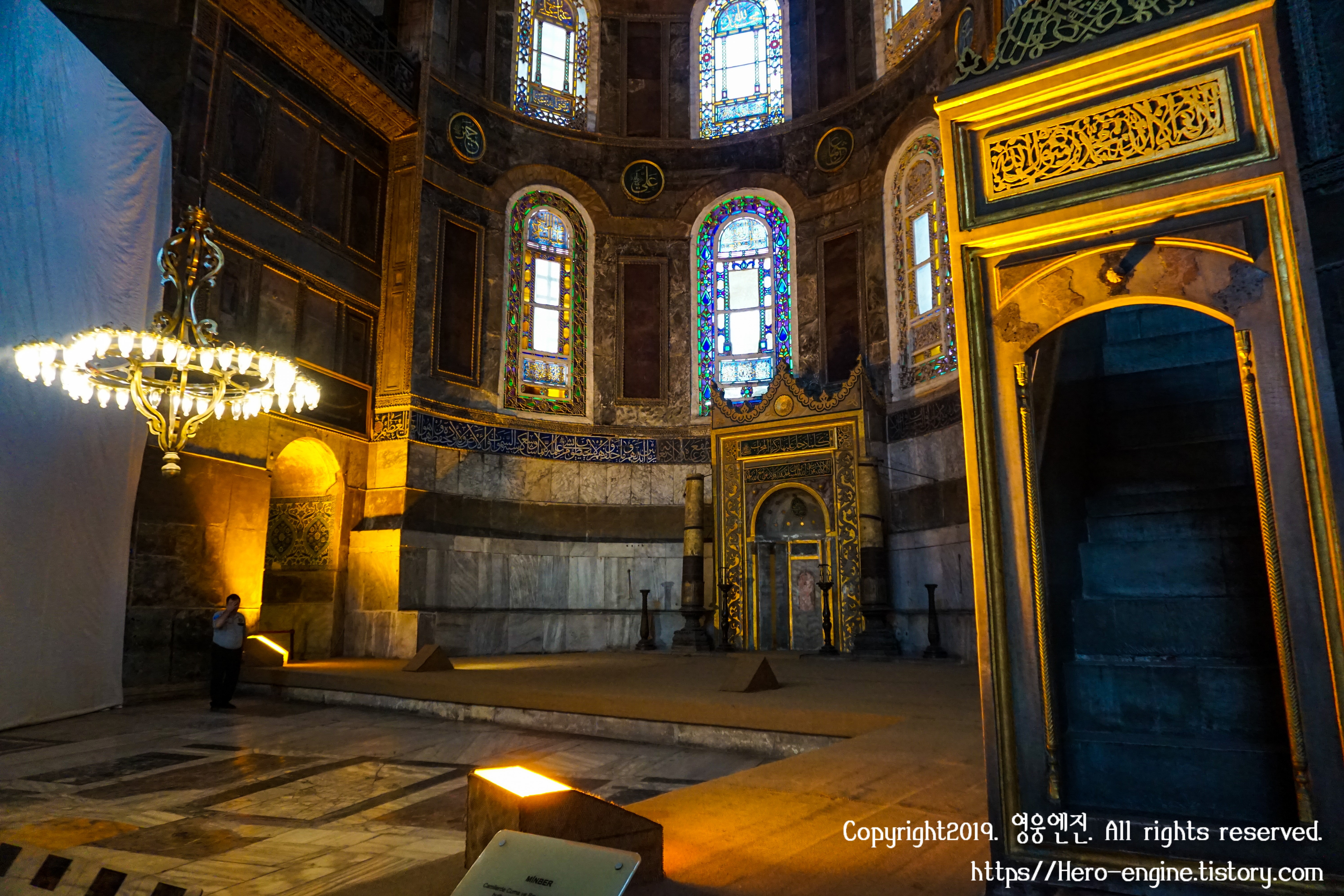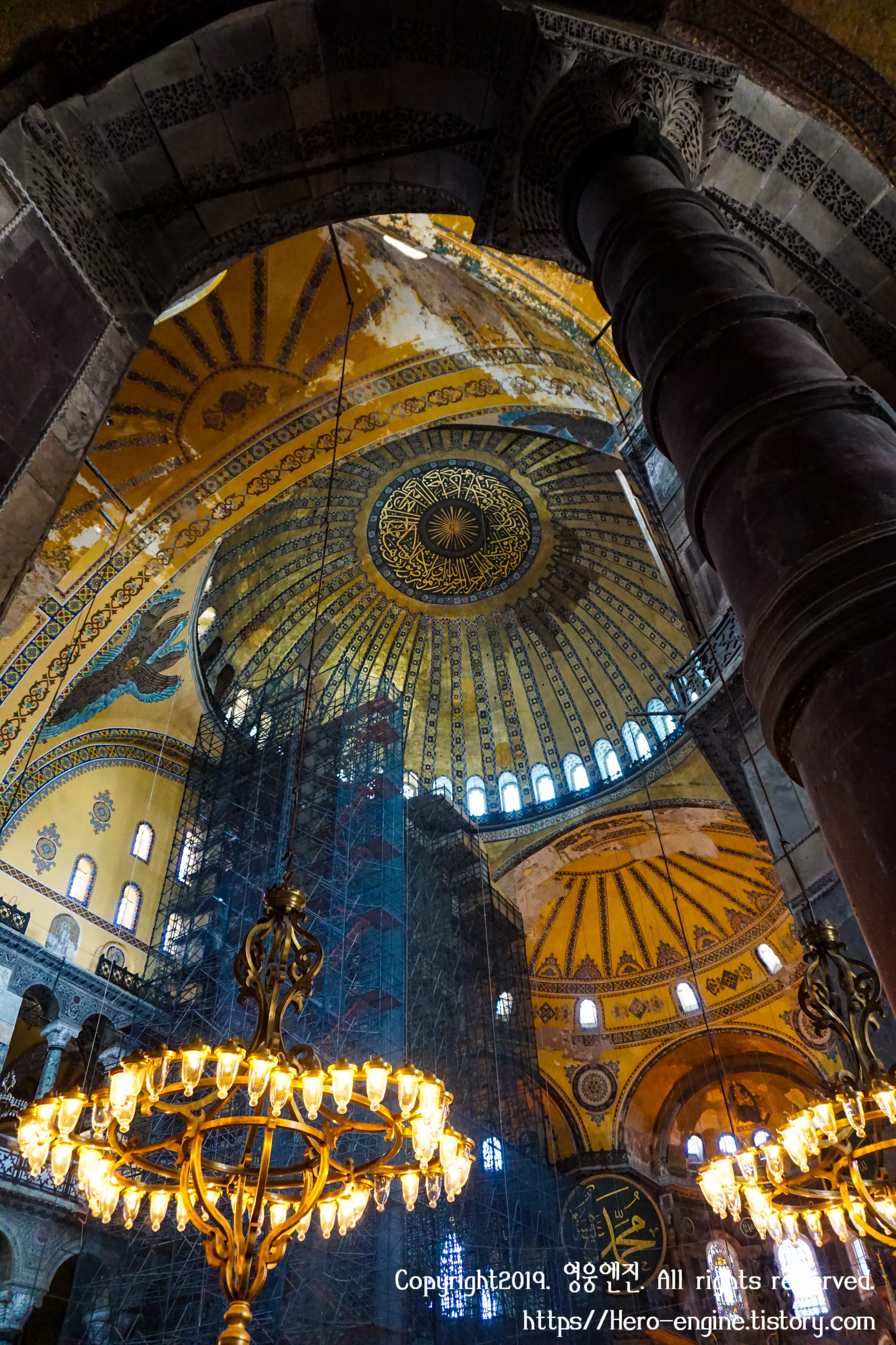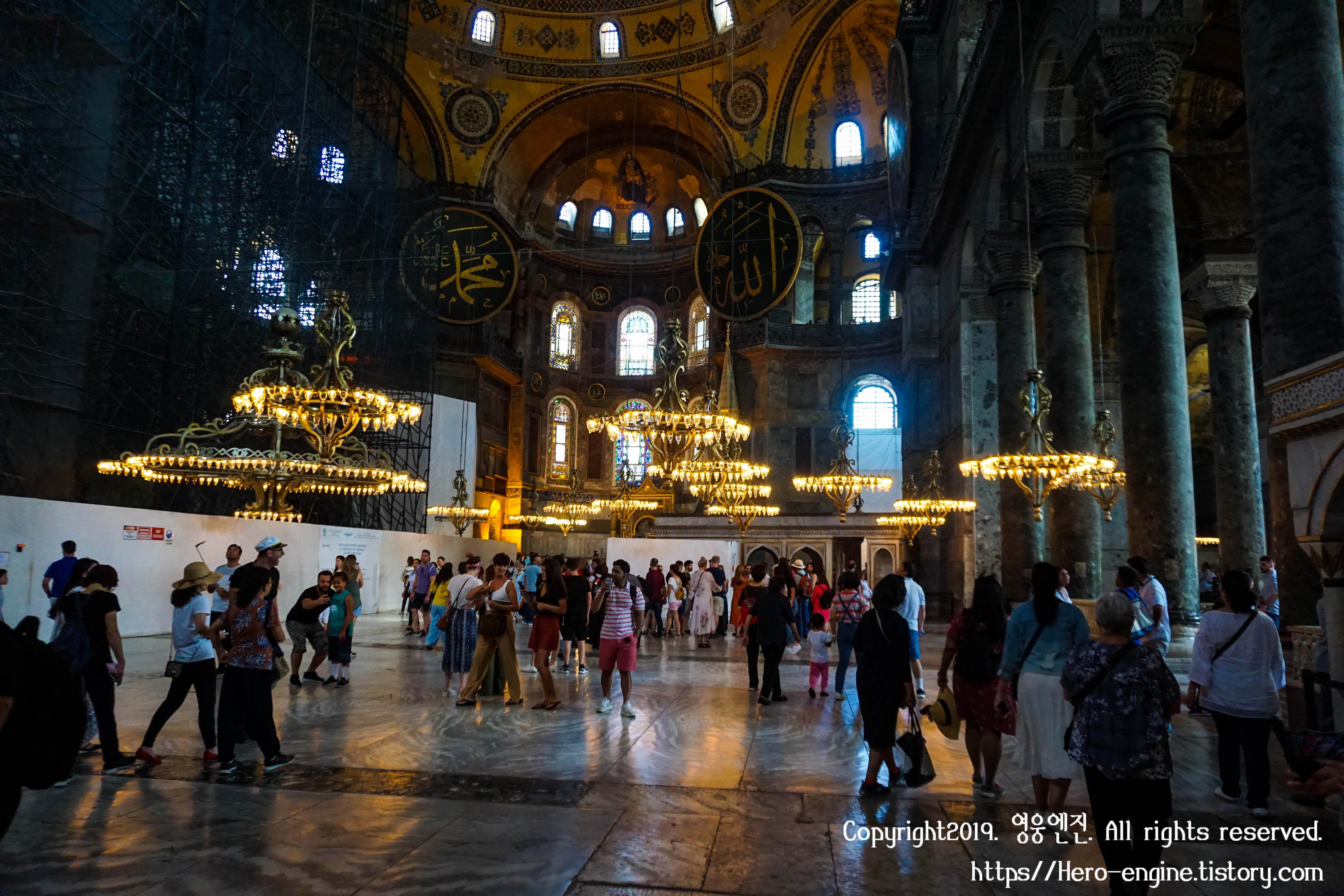 더 정확한 역사적 사실은 1453년 콘스탄티노플이 함락되고 술탄 메흐메트 2세 집권하게 되죠. 그때부터 모스크로 사용되었는데 1700년대 이후에 벽화 즉, 모자이크를 칠보로 덧칠해버리는 바람에 그동안 숨겨져 있었어요.
