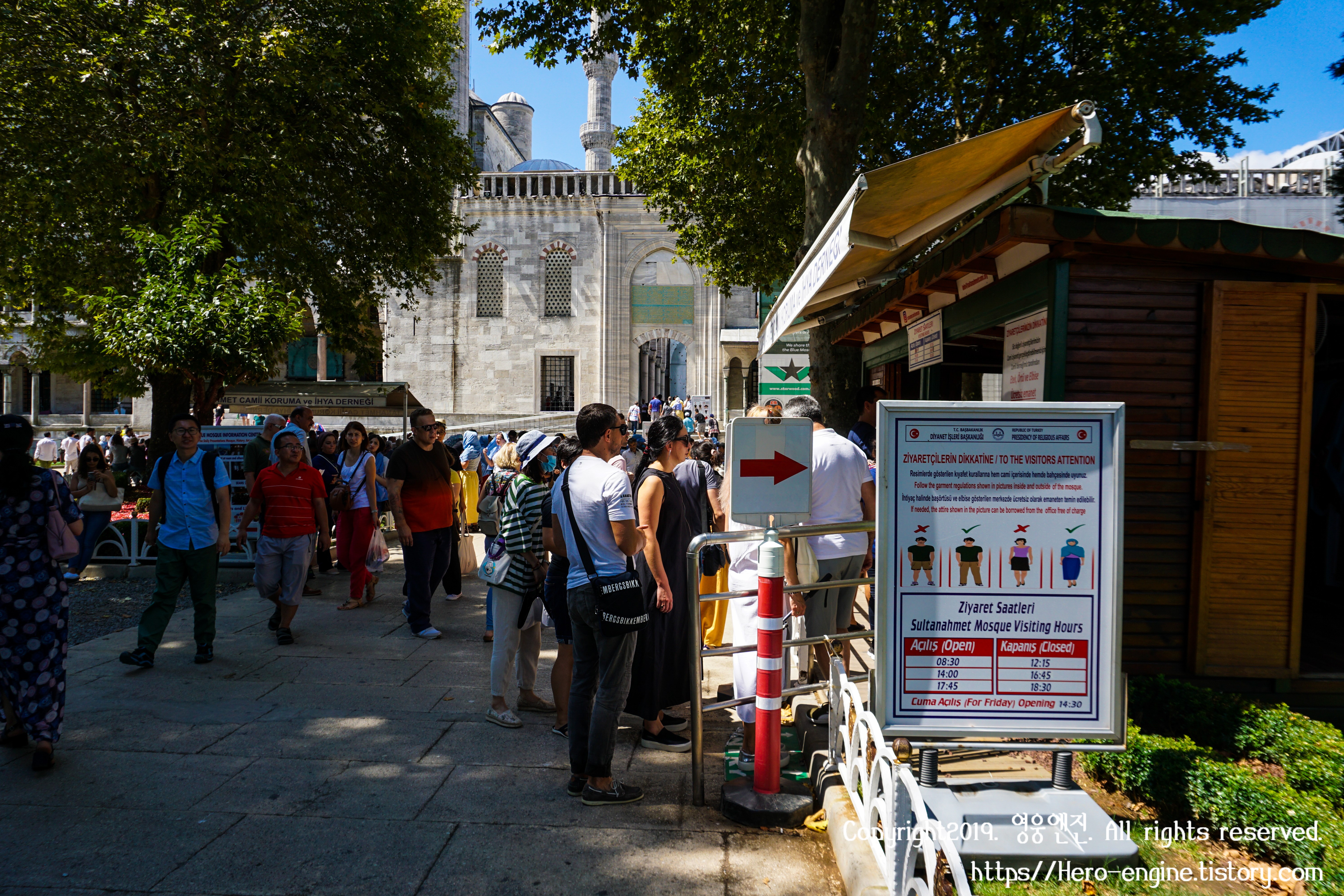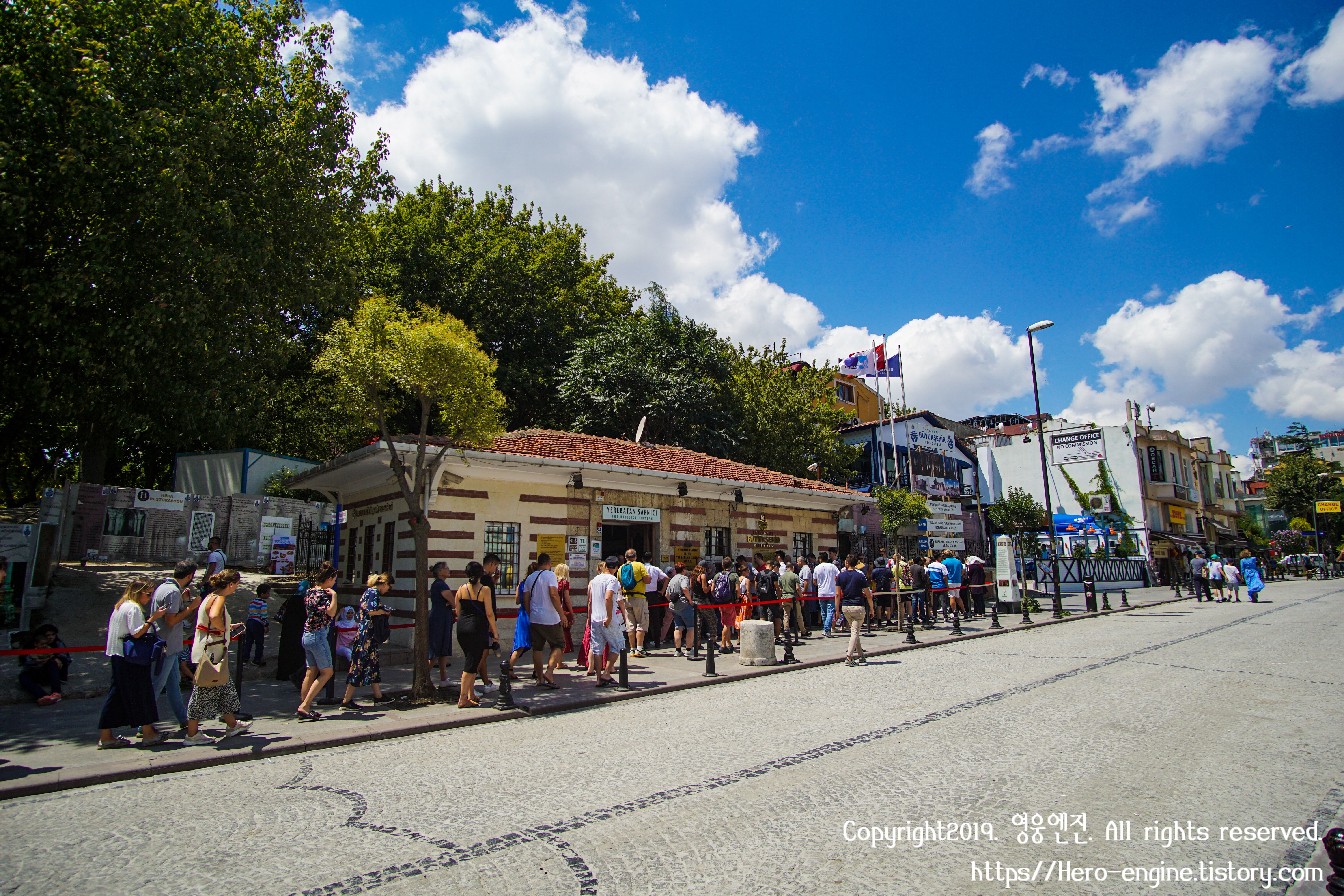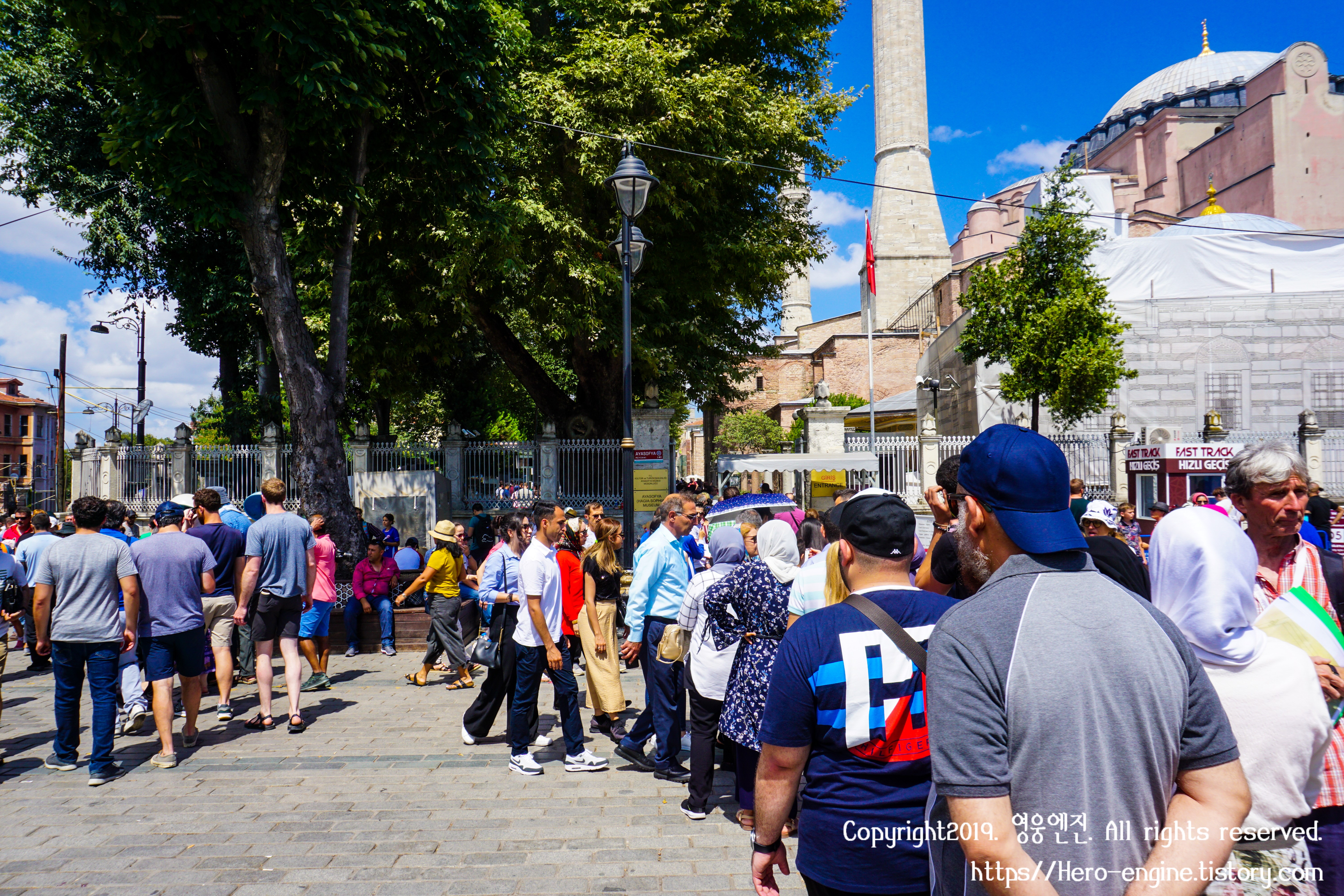 아야소피아를 들어갈 엄두가 생겼습니다. 지하궁전 다녀오니 확실히 줄이 많이 빠져있었습니다?인데 이 정도입니다. 기다리기로 했습니다.