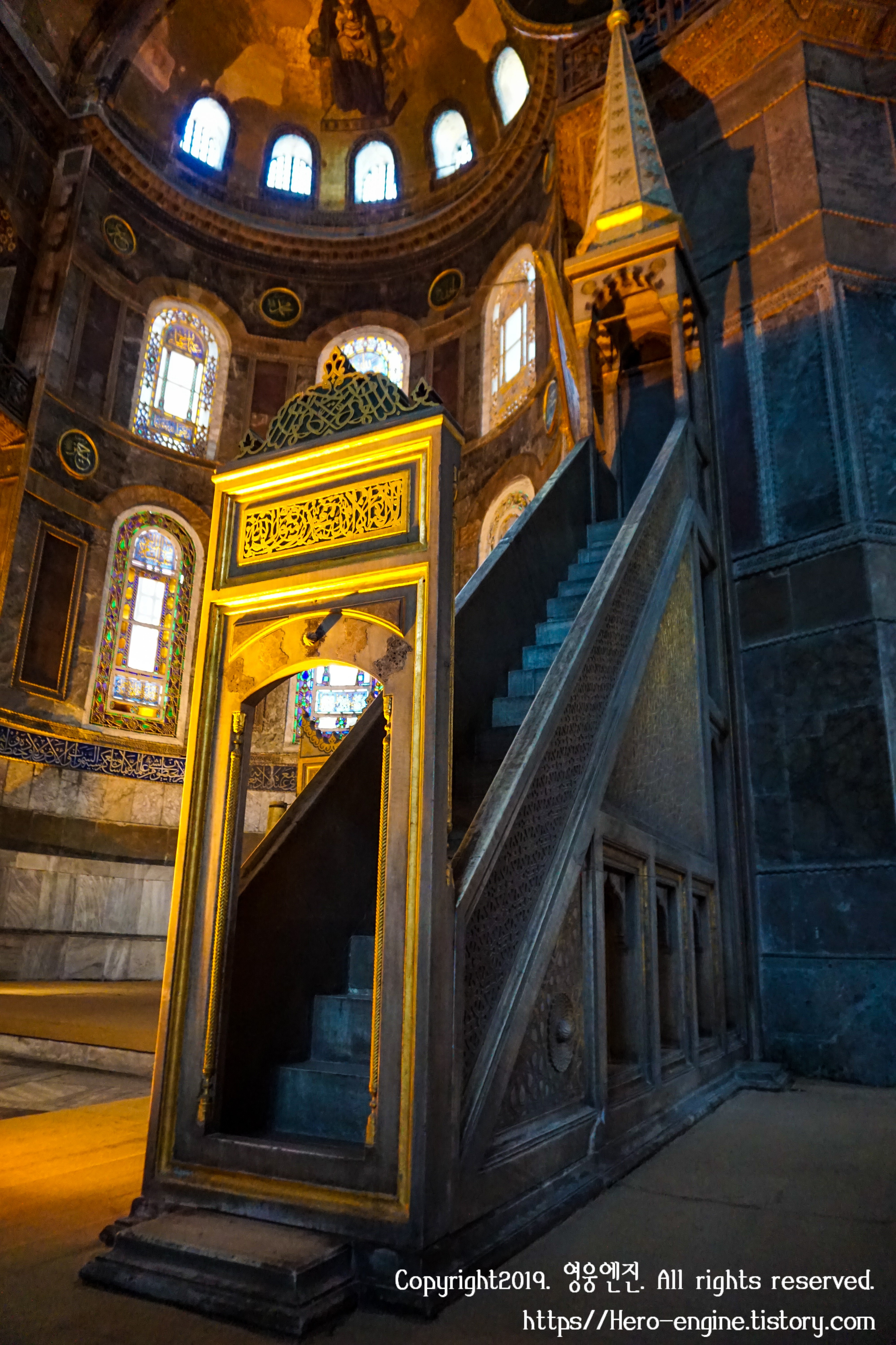 그 이후 1453년 콘스탄티노플이 함락당하고 술탄 메흐메트 2세에 의해 성당이 자미로 바뀌게 되는 역사를 겪게 됩니다.