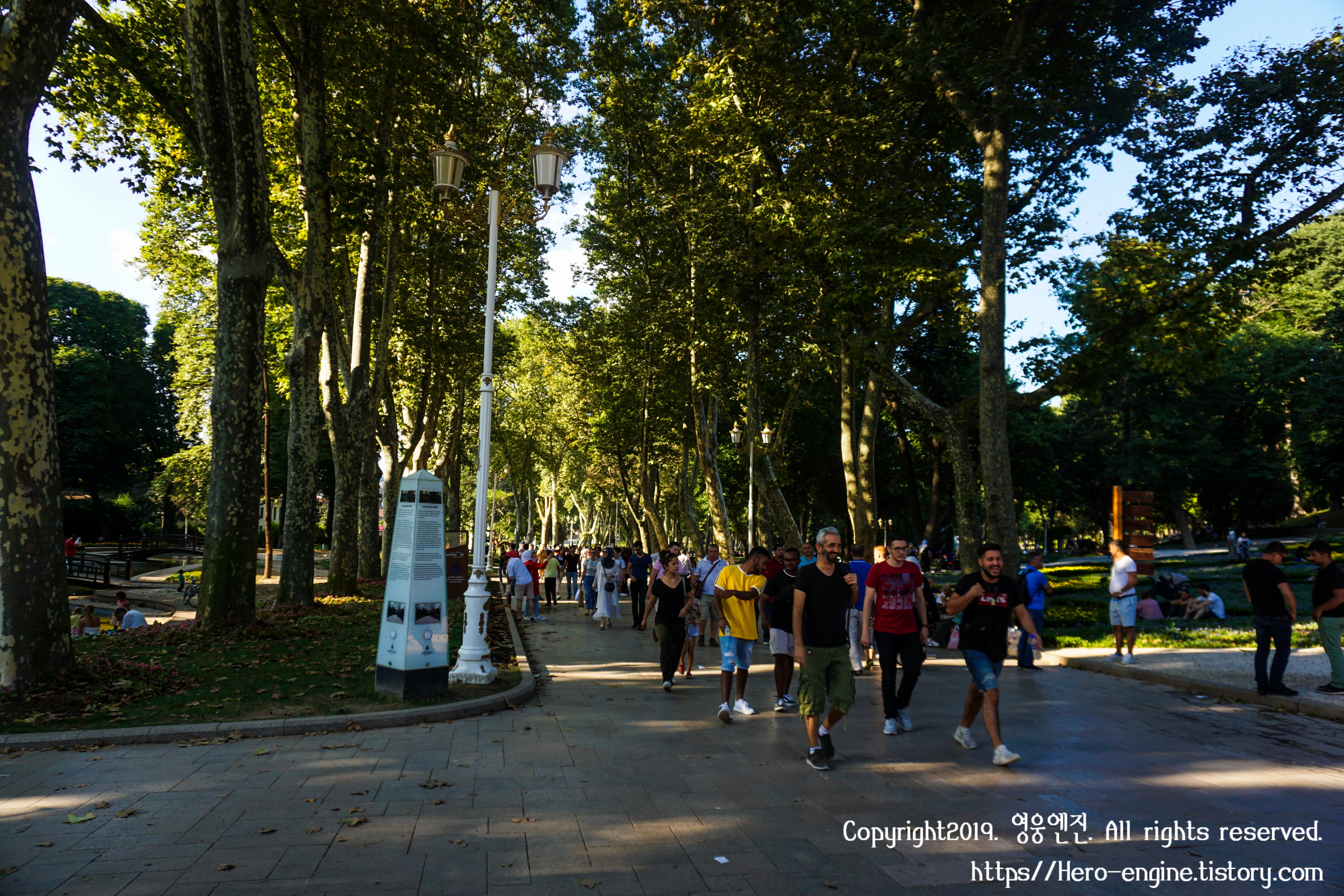시간이 이미 5시를 넘어서 토프카프 궁전 입장 시간을 넘어버렸어요. 그래서 공원 산책이나 좀 하기 시작했어요. 여기가 초입부인데 우측으로 토프카프 궁전의 담벼락이 이어져있었습니다.